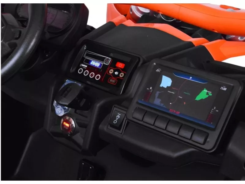 Terénní dvoumístná Buggy Maverick Can-am je absolutní letošní novinkou pro každého malého řidiče. Sportovní vozidlo pro dvě osoby s pohodlným sedadlem a odpružením, které vás doveze kamkoli potřebujete. Pohon zajišťují 4 motory, tlumiče a měkká EVA pěnová kola umožní pohodlnou jízdu v terénu. Dvoumístný terénní vůz poháněný 4 x motorem (4 x 24V - 200W) + baterie (1 x 24V7Ah) + dálkový ovladač s 2,4 HGz.